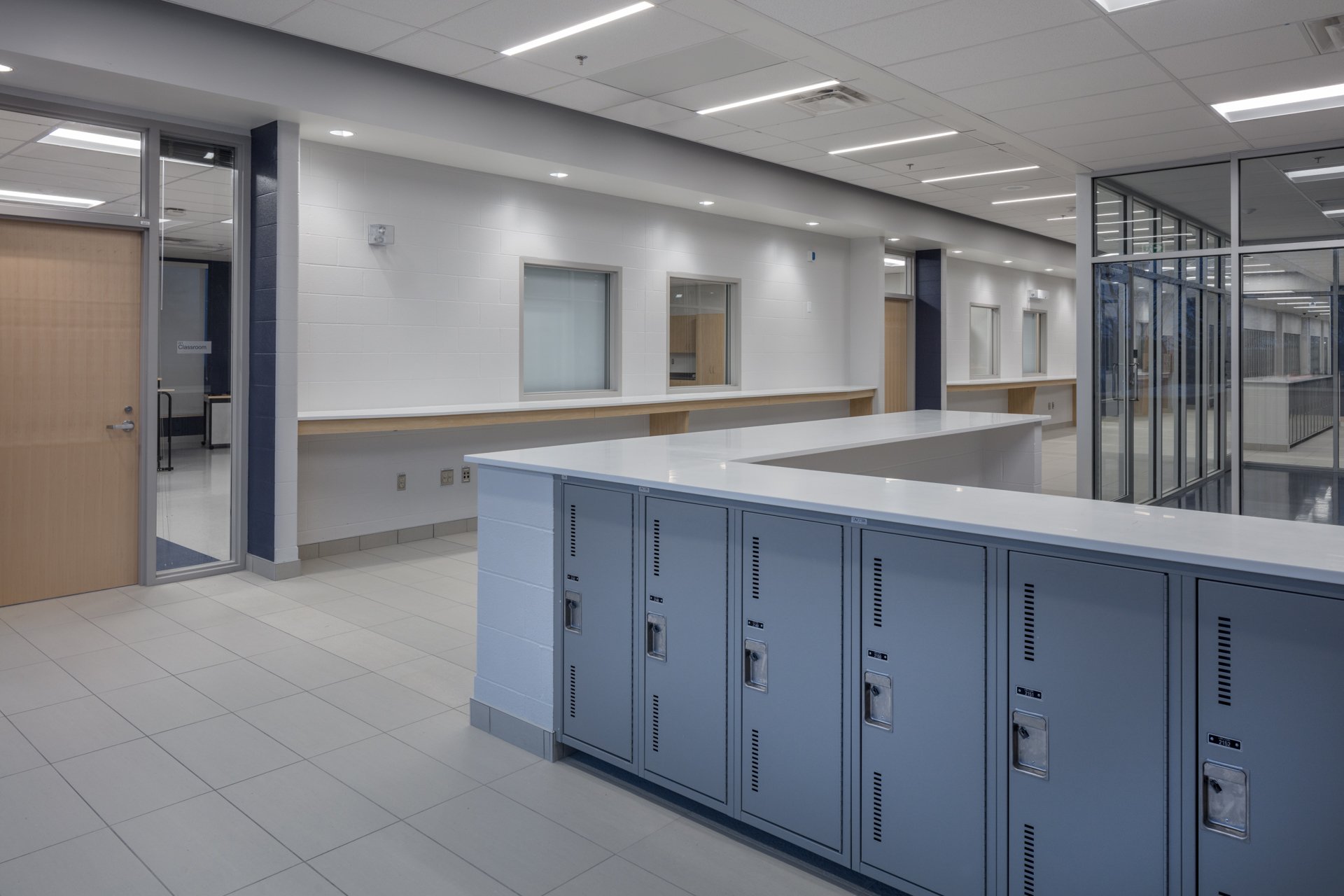 Design was based on a vision of today’s Pedagogies of flexible learning spaces with a variety of seating, writing, and play options, natural lighting, and views to the exterior through the use of windows between corridors and classrooms and at the end of corridors at the Learning Commons.